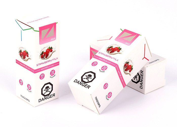| Utilisation: | Huile de CBD | nom de produit: | Boîtes de papier de empaquetage de la fraise 30ml d'huile au détail du lait CBD avec l'estampillage |